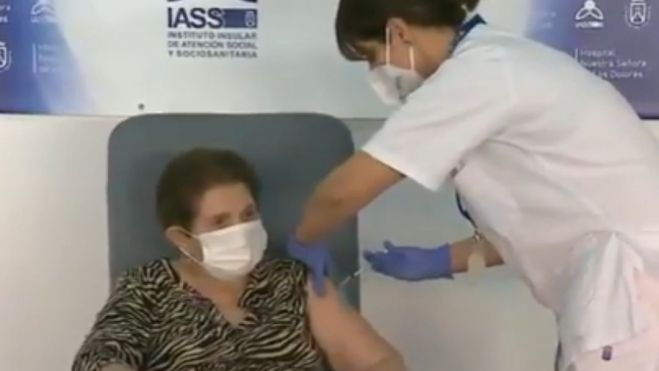 Casi simultáneamente, en las otras seis principales islas del archipiélago han sido vacunadas otras seis mujeres en otras tantas residencias de mayores.- En Gran Canaria la primer vacuna ha sido para María del Carmen Déniz Marrero, 73 años, residente en el Centro Sociosanitario El Pino.