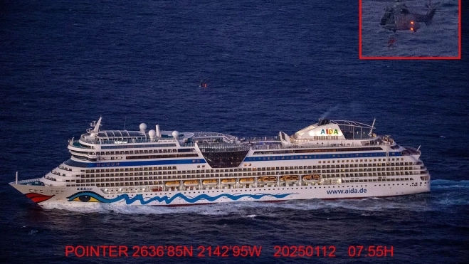 El Ejercito el Aire y del Espacio ha rescatado en la madruagada de este domingo a una turista que sufría una infección pulmonar y que se encontraba en estado grave en alta mar en el crucero Aidamar. El Ejército tuvo que trasladarse a más de 600 kilómetros al suroeste de la isla de El Hierro para realizar dicho rescate.