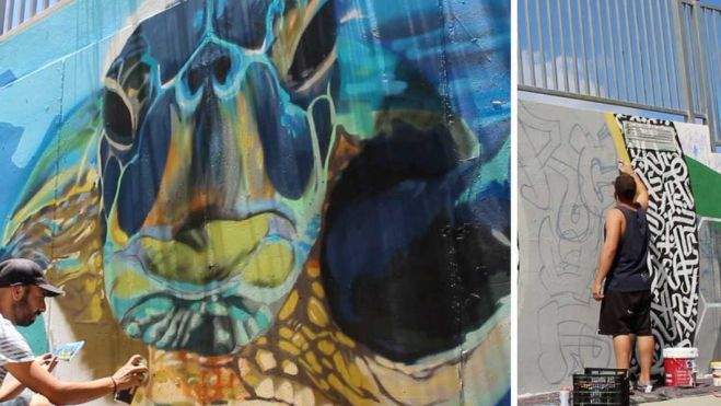 "El concepto del proyecto lo puso la Fundación Disa. Me plantearon que hiciera algo pedagógico, una iniciativa en la que se realizara un mural con la escuela de Arte y con Plena Inclusión, que son chicos con discapacidad intelectual derivados de centros. Diseñé el boceto y conseguí que uno de los muros fuera libre para que ellos desarrollaran sobre él lo que quisieran. Además, hubo una muy buena relación con los compañeros de la Escuela de Arte, que era lo que más le interesaba al colectivo con discapacidad, esa parte pedagógica y relacional".