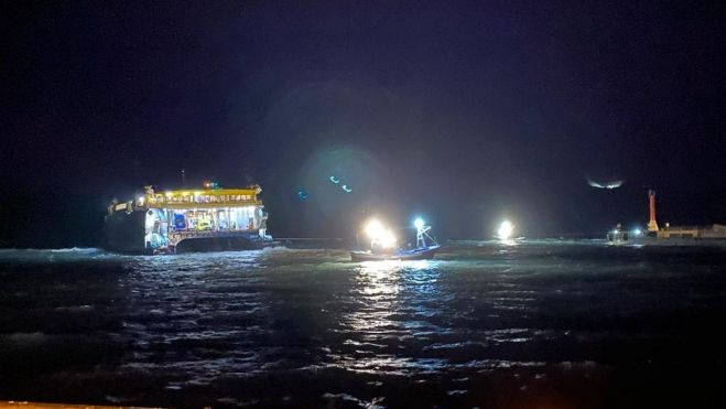 Un ferry de la naviera Fred. Olsen ha encallado esta noche a pocos metros del puerto de Agaete, en el noroeste de Gran Canaria, debido al temporal, ha informado el Cabildo de la isla en su cuenta de Twitter.En el barco, el catamarán Bentago Express, viajan 59 pasajeros y 17 tripulantes, ninguno de los cuales ha resultado herido, confirman tanto el 112 como el Cabildo de Gran Canaria.