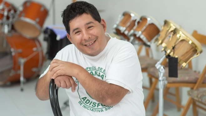 Hace unas semanas Jesús participaba en una batucada con otros compañeros de Adisfuer, la asociación de discapacitados de Fuerteventura. A los asistentes, les sorprendió la habilidad del joven, de 34 años, con la batería.