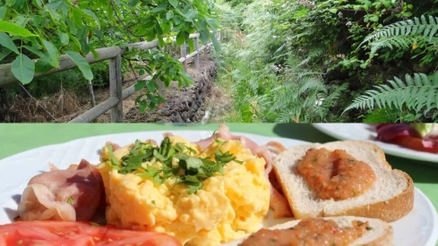 Una vez cumplida la misión llega la recompensa prometida en forma de brunch. Nuestro destino es la Tasca Sansofé, a solo diez minutos en coche de Pinolere, donde es imprescindible reservar, a poder ser en torno a tres horas después del inicio de la caminata. Todos sus menús brunch individuales incluyen zumo de frutas de temporada, café con leche o infusión, panes variados, queso crema y mermelada de la casa, bizcochón, bollería y selección de panes.