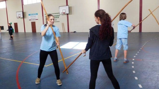 Los quince estudiantes polacos que participan en este intercambio se iniciaron en el aprendizaje de las modalidades de juego del palo y salto del pastor, en una iniciativa que ha favorecido la integración y el conocimiento entre la cultura polaca y majorera, según un comunicado del Cabildo.