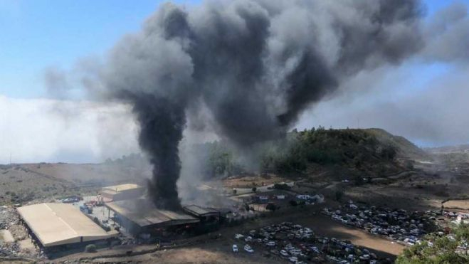El Cabildo de El Hierro ha dado por extinguido el incendio declarado este martes en una nave de almacenamiento de neumáticos y colchones del Complejo Ambiental de El Majano, en la isla de El Hierro. El fuego ha afectado a unos 5.000 metros cuadrados de terreno dentro de este punto limpio y que ha ardido, mayoritariamente, plásticos duros, férricos y papel y cartón. La valoración de las causas de este incendio está en manos de la Guardia Civil de El Hierro que abría una investigación abierta a fin de esclarecerlas, informa el Cabildo.