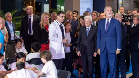 Tras la visita al museo Elder, el Rey y el presidente de la República de Italia se han trasladado al Teatro Pérez Galdós para asistir a la mesa de debate sobre defensa y seguridad en la que han participado el alto representante de la Unión Europea para Política Exterior y de Seguridad, Josep Borrell, y la presidenta de Cotec, Cristina Garmendia, tras la cual dará el discurso de cierre de esta cumbre internacional en la que se ha hablado de soberanía tecnológica