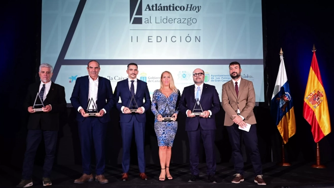 José Luis Artiles recibe el galardón en nombre de Ana Díaz Artiles en la categoría Innovación y Sostenibilidad en la II Edición Premios Atlántico Hoy al Liderazgo / TONY HERNÁNDEZ