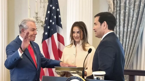 León tomó posesión de su cargo el 10 de febrero de 2026, cuando juró el puesto ante el secretario de Estado estadounidense, Marco Rubio.