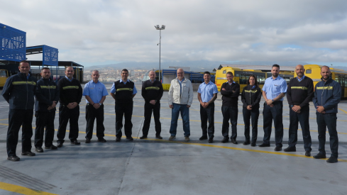 El director general de Guaguas Municipales, Miguel Ángel Rodríguez, junto al personal técnico de la casa, ha dado la bienvenida a los doce nuevos conductores que se incorporan a la plantilla de la empresa pública de transporte durante este mes de marzo, lo que eleva a 117 profesionales las contrataciones desde noviembre de 2021.