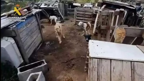 Los agentes comprobaron que los perros permanecían amarrados con cadenas cortas, rodeados de excrementos acumulados y sin unas condiciones higiénico-sanitarias adecuadas.