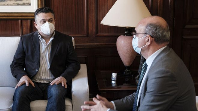Este jueves, ha sido recibido en Las Palmas de Gran Canaria por el delegado del Gobierno en Canarias, Anselmo Pestana, al que ha agradecido su mediación para que haya llegado a salvo nuevamente a la isla.