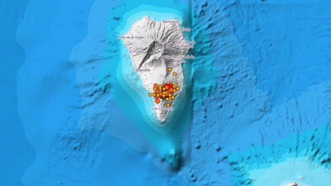 La red de vigilancia volcánica de seguimiento 24 horas del Instituto Geográfico Nacional (IGN) ha localizado durante la noche en la isla de La Palma un total de 42 sismos asociados a la erupción del volcán de Cumbre Vieja, una docena de ellos de magnitudes superiores a 3 (mbLg).