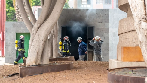 Efectivos del Cuerpo de Bomberos y Policía Local de Puerto del Rosario han actuado "de forma inmediata" con el fin de estabilizar y asegurar la zona en la que se encuentra la estación, en la Plaza de Las Américas (calle León y Castillo), ha informado el Consistorio en un comunicado.