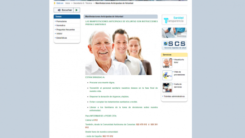 La Organización de Consumidores y Usuarios (OCU) ha publicado en la revista OCU Salud de Octubre un estudio sobre la tramitación de las Instrucciones Previas por parte de las comunidades autónomas, que destaca que solo cuatro comunidades autónomas permiten registrar y disponer en un mes del documento de Instrucciones Previas. Según la publicación, la información en la web de la Consejería de Sanidad del Gobierno de Canarias al respecto "resulta confusa". Por otra parte, la cita previa para la formalización del documento en la comunidad es de 48 días, una de los tiempos de espera más largos del país.