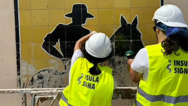En el momento de tenerlo delante, el equipo de Insula Signa vio que estaba recubierto con una capa de pintura blanca —“que de alguna manera también lo estaba protegiendo”—, por lo que había pasado desapercibido. “Hemos visto al quitarla que hay numerosos azulejos que están agrietados”, comenta el presidente de la asociación. Para Medina, con el rescate que han ejecutado nada ha terminado. Al contrario, “ahora empieza todo” porque no se trata de una restauración: “Eso lo tienen que hacer profesionales, consistiría en reparar los daños que tiene y protegerlo para el futuro”.