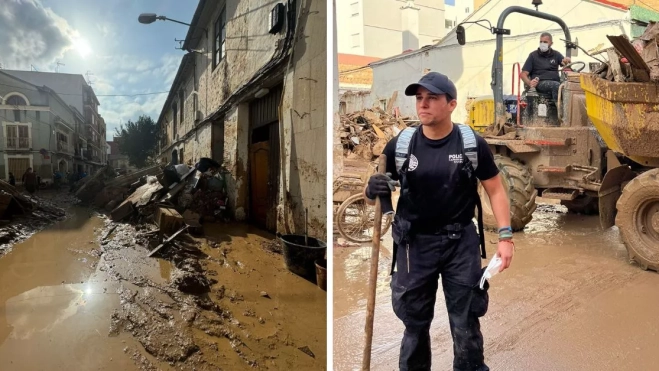 R: Mis labores se centraban en achicar agua por todos lados, como todo el mundo. Después, acompañamiento por las noches porque la gente tenía miedo de que se llevaran sus cosas. Es que en una de las zonas no había luz. Después pasear por el lodo hasta las rodillas. Llegaba un momento que tenías que estar con mascarillas del olor que había. Era un desastre y la organización no estaba bien ejecutada porque, sí llegaba mucha gente allí, pero mucha sin EPI, agarrando cosas con la mano en el suelo. Ayudar sí, pero hay que tener una higiene y una protección.