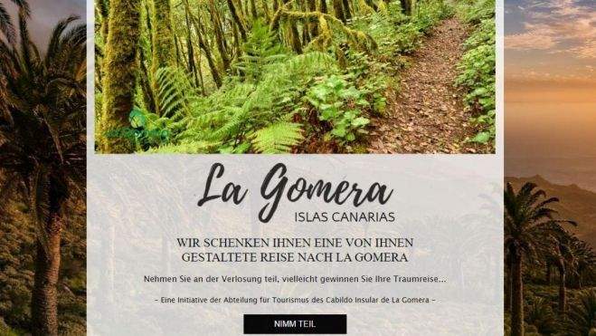 El Cabildo de La Gomera continúa con las acciones promocionales vinculadas a la iniciativa “Te regalamos un viaje a La Gomera diseñado por ti”, con la que se dirige a los principales mercados emisores (Alemania, países nórdicos, Austria, Suiza, Reino Unido Irlanda, Francia, Bélgica y Holanda), a través de las redes sociales y medios de comunicación, en la que se incluye la celebración de un sorteo de un viaje para dos personas a La Gomera hecho a medida del usuario.Tras el éxito de los dos primeros sorteos de viajes a la isla, la Consejería de Turismo abre la participación del concurso para usuarios europeos. El premio consta de unas vacaciones de siete días para dos personas, en el que se incluye el traslado a la isla, la estancia en un hotel de tres estrellas en régimen de alojamiento y desayuno y el uso de un coche de alquiler.