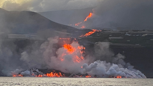 La colada de lava que emerge de la erupción volcánica de La Palma ha llegado al mar durante la noche de este martes y ha formado un pequeño delta en una zona de acantilados en la costa de Tazacorte. La situación de la nube de dióxido de azufre formada tras el contacto de la lava con el mar preocupa ahora a los expertos, que recomiendan a la población no acercarse a la zona. La situación actual de la lava en el mar se puede conocer gracias a las imágenes facilitadas por el buque del Instituto Español de Oceanografía Ramón Margalef, que a primeras horas de este miércoles publicaba un vídeo donde se distinguía el delta de lava que ha formado la lava durante la noche.