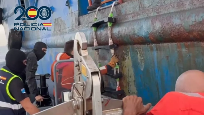Durante la intervención, los agentes detuvieron a los nueve miembros de la tripulación y realizaron una primera inspección de seguridad en la que hallaron estructuras y compartimentos ocultos ajenos a los de un buque de carga convencional. Se sospecha que en esas zonas se almacenaba el estupefaciente.