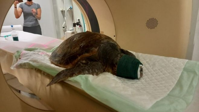 El equipo veterinario del Centro de Recuperación de Fauna Silvestre de La Tahonilla, ha realizado pruebas diagnósticas por resonancia a una tortuga Caretta caretta que se halla internada en el centro.Este tipo de pruebas se ha realizado porque el animal se mantenía flotando en el estanque de observación desde hacía varios días. Con ellas, se pretende evidenciar un diagnóstico certero sobre sus síntomas. El equipo veterinario del centro sospecha que la tortuga puede sufrir un pneumoceloma y con el resultado de estas pruebas se confirmará este diagnóstico.