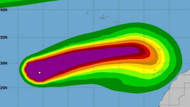 Según esa previsión durante la madrugada del 15 de octubre entrará en el noroeste de la zona marítima de Canarias ya como ciclón post-tropical con vientos de hasta fuerza 8-9 y mar muy gruesa.