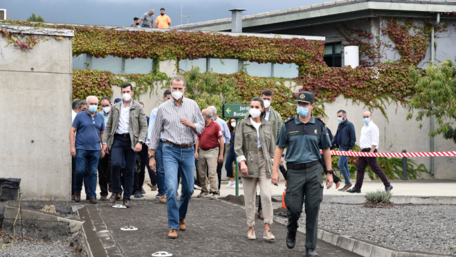 Los Reyes de España han realizado una visita de 5 horas a La Palma para conocer la situación de los afectados por la erupción del volcán de Cumbre Vieja y trasladarles sus condolencias, a su vez que han querido agradecer su labor a los efectivos que están colaborando en labores de emergencia y evacuación.Don Felipe y doña Letizia llegaron a la isla a las 11.30 hora local y se trasladaron al Acuartelamiento de El Fuerte que ha servido de refugio para muchos evacuados desde que el domingo comenzase la erupción. Allí departieron con algunas de las víctimas del paso de las varias coladas y les transmitieron la "solidaridad y el cariño de todos los españoles".El Rey confesó lo queridos que se han sentido siempre en La Palma y en toda Canarias y quiso dar un mensaje de esperanza si bien es consciente de que "hay cosas que no se podrán recuperar", aunque recalcó que "no van a faltar ayudas de todas las administraciones porque el compromiso es claro".Más tarde los reyes se reunieron con representantes de los distintos cuerpos de seguridad del Estado, con miembros del Servicio Canario de Salud y la Cruz Roja, a quienes agradecieron su "lección de capacidad y humanidad".Acto seguido asistieron a la reunión del Comité Director del Plan Especial, donde fueron recibidos entre aplausos y, desde allí, llegaron al puesto de mando del operativo de emergencia situado cerca de la zona de erupción.Como colofón a su corto pero intenso viaje, los monarcas se dirigieron a la zona donde se encuentra la lengua de lava que avanza hacia el mar, donde hablaron nuevamente con algunos de los afectados por la tragedia. Antes de abandonar La Palma, don Felipe aseguró que "lo vivido hoy no lo vamos a olvidar".