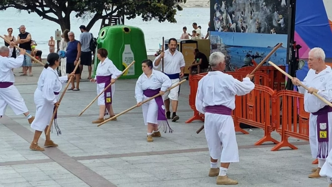 "Adaptamos cómo se enseña, pero el juego y el arma son iguales, salvo para las personas con discapacidad visual que cambiamos el garrote por uno acolchado", explica a Atlántico Hoy Nanda Donate, profesional de este deporte, además de impulsora y coordinadora de la Lucha del Garrote Canario adaptado.