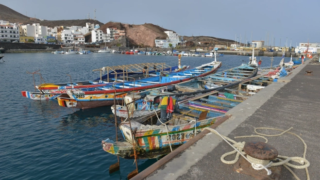 Cayucos en el puerto de La Restinga, en El Hierro. / EFE