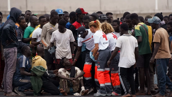 Cinco horas después, el mismo puerto recibió otra embarcación. Fue la segunda del día, con 134 personas de origen subsahariano, de las que 96 son hombres adultos y 38 menores, entre ellos una niña.