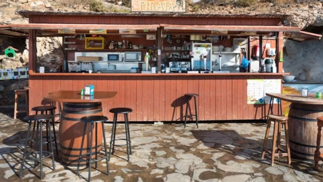 El menú del Chiringuito Pirata no es muy extenso pero abarca unos cuantos platos ligeros perfectos picar un día de calor, como ensalada de tomate y queso, paella, tortilla, ceviche o salpicón de atún y pulpo. Esta oferta, sencilla pero efectiva, se condimenta con unas vistas espectaculares de Montaña Roja desde un extremo de la playa de La Tejita.