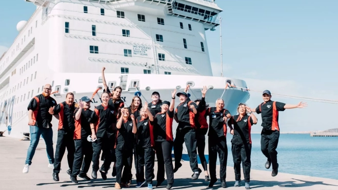 “Siempre dije que tenía el sueño de montarme a bordo, solo que la vida pasa y luego ya cuando tenemos trabajo y demás se hace más complicado, pero llegó la oportunidad en 2022 y me dije que esto no lo puedo dejar pasar más, así que me fui a bordo por tres meses”, detalla Rut, profesional de la pedagogía y educadora en Aldeas Infantiles, aunque no fue a ejercer como tal en el Global Mercy. “Yo me apunté para echar una mano en lo que hiciese falta y como el inglés lo tenía básico al final estuve en el comedor y en todo el tema de la limpieza”.