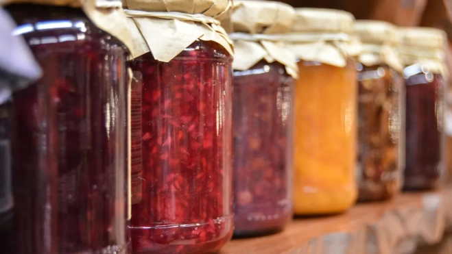 5. Envasado y conservación: Verter la mermelada caliente en los frascos esterilizados, cerrarlos bien y colocarlos boca abajo durante 48 horas para lograr el sellado al vacío. Para una conservación prolongada, se pueden hervir nuevamente al baño maría durante 30 minutos.