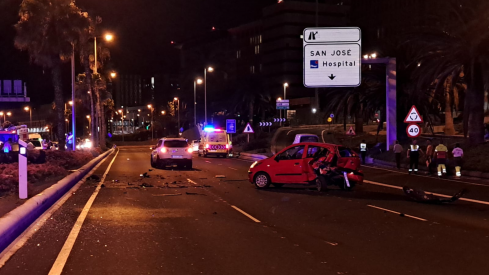 Cuatro personas han resultado heridas, dos de ellas graves, esta madrugada en Las Palmas de Gran Canaria en un atropello y en el vuelvo de un coche, accidentes ocurridos en ambos casos en la avenida marítima.