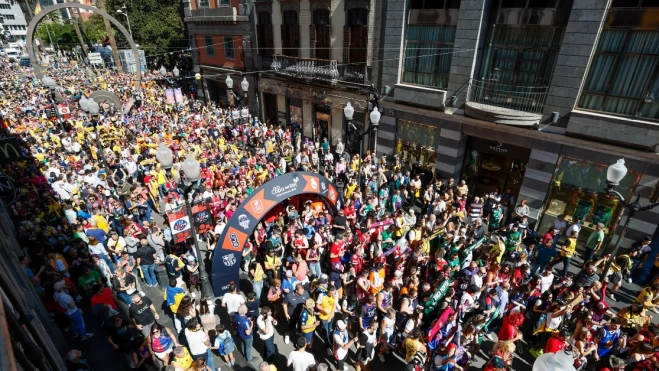 Y en ese mismo punto lo han retomado este año donde la charanga del conjunto vitoriano ha sido una de las grandes protagonistas de un recorrido al ritmo de la música y cánticos que ha forjado una sensación de hermandad en la capital grancanaria.