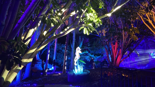 Las noches serán diferentes para el Palmetum de Santa Cruz de Tenerife hasta mediados del mes de enero. Y es que, como se puede apreciar en la capital desde que cae la noche, este espacio natural se llena de luces de todos los colores.