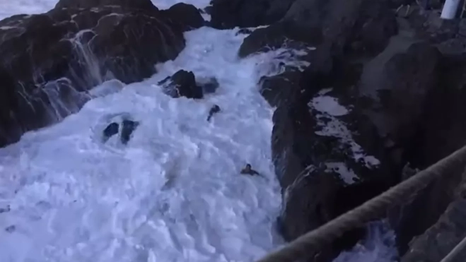 La propia morfología del risco donde está el charco lo protege en un principio de las olas, pero solo por un momento. El vídeo muestra que primero una ola entra en el charco sin tanta fuerza. Es una segunda ola la que ya cubre de espuma todo el charco y empuja al bañista algunos metros. Seguidamente una ola con mayor fuerza también chocó contra el risco, cubriendo de nuevo la zona de espuma.