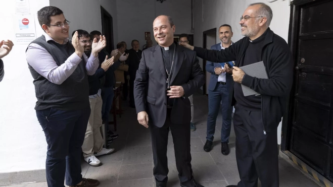 Conozco a Eloy desde hace cuarenta años. Es vecino de mi calle. Su padre regentó la tienda de esa calle durante mucho tiempo y él era un niño que andaba por Vegueta escribiendo ese destino que ahora le lleva al Obispado. No valoro a las personas ni por sus cargos, ni por sus logros, y me da miedo cuando suben porque como periodista he sido testigo de muchos atontamientos y de muchas transformaciones negativas e inesperadas. No creo que sea el caso de Eloy. Hablo mucho con él y jamás hemos tocado la religión. Es buena gente y uno se queda un poco más tranquilo sabiendo que sus mensajes no tendrán nada que ver con los del anterior obispo de Tenerife.