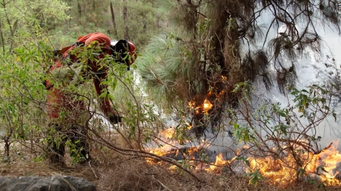 Los medios de extinción tuvieron un momento comprometido y de tensión entre las 11:00 horas y las 2:00 horas de la madrugada. “La retama arde con mucha intensidad y con llamaradas muy altas. Quemó lo que quedaba sin quemar de la ladera norte y los medios tuvieron que replegarse”.