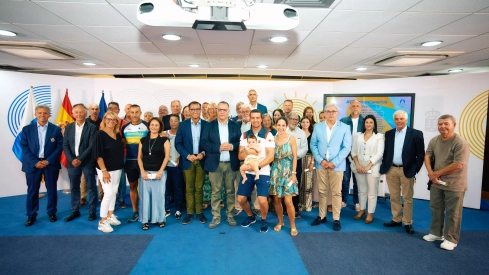 El regatista Joaquín Blanco y el triatleta paralímpico Lionel Morales tomaron la palabra para agradecer este reconocimiento, acompañados del árbitro internacional de vóley playa José María Padrón y la entrenadora de natación adaptada Paqui Romero, quienes aún no se han concentrado con sus equipos o viajado a Francia.