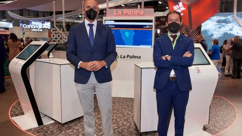 El presidente del Cabildo de La Palma, Mariano Zapata, y el consejero de Turismo, Raúl Camacho, asisten a la Feria Internacional de Turismo (Fitur), que se celebrará en Ifema del 19 al 23 de enero, con el objetivo de reforzar el turismo nacional e internacional que llega a la Isla como parte de la estrategia para la recuperación socioeconómica de La Palma tras la erupción del volcán.