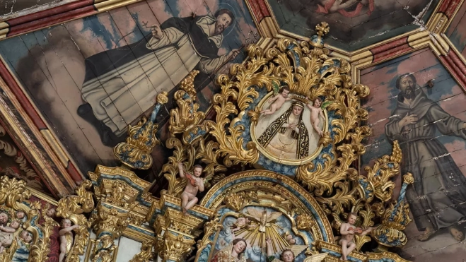 Hablamos de la Iglesia de San Francisco de Asís, situada en Santa Cruz de Tenerife. Este templo alberga uno de los conjuntos de frescos más espectaculares del archipiélago, con pinturas que cubren las paredes del presbiterio imitando elementos arquitectónicos como columnas, cornisas y balaustres. Entre estos trabajos destacan cuatro escenas del Antiguo Testamento pintadas al fresco, que rodean el altar mayor y están directamente relacionadas con la Eucaristía.