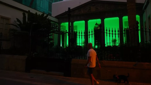 La fachada del Patio de Honor del Parlamento de Canarias se ha iluminado la noche de este lunes de color verde con motivo del Día Mundial contra La Meningitis.
