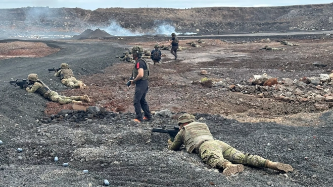 Por si alguien está confundido o llevándose las manos a la cabeza, calma. Que no cunda el pánico porque fue todo una simulación. Pero una muy realista. El Mando de Canarias organizó este martes una jornada para que los medios —acudieron periódicos y la televisión— conocieran cómo trabaja el ejército desde dentro. Para acercarse a la sociedad, enseñar lo que hacen y ser transparentes. Al menos, ese es el objetivo. Aunque también se pretendía formar al conocido como cuarto poder en la instrucción militar y mostrar cómo se actúa en el frente.