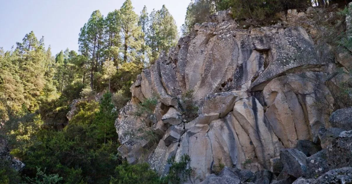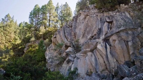 Entre pinares y brezos descubrimos esta roca como testimonio de una erupción cuyas coladas de lava al enfriarse formaron esta singular estructura. Ocurre que cuando la lava se está solidificando, su masa se contrae y se agrieta, por lo que al quedar expuestas las rocas a la intemperie tienden a fracturarse y en algunas ocasiones adoptan formas características.