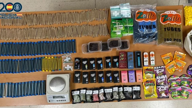 Además de los dos detenidos por los hechos expuestos, se han intervenido más de 180 cigarrillos de marihuana, medio kilogramo de cogollos de esa misma planta, alimentos como bizcochos y gominolas e incluso vapeadores que contenían el principio activo tetrahidrocannabinol (THC).