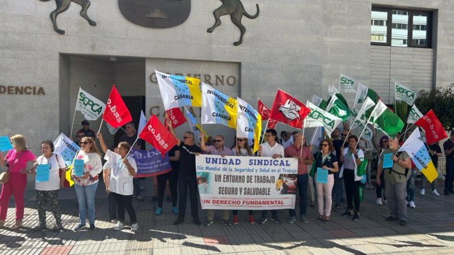 Los profesionales del Servicio Canario de la Salud se han concentrado a las puertas del edificio de Presidencia en Las Palmas de Gran Canaria para denunciar el incumplimiento del Gobierno de Canarias de un Plan Regional de Prevención de Riesgos Laborales y sus Planes Sectoriales correspondientes.