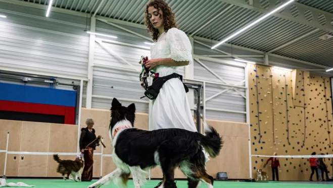 La primera parte del examen está compuesta de siete ejercicios. En el primero de ellos se plantea un escenario en el que el perro debe estar tumbado con distracciones a su alrededor y aguantar así durante dos minutos. Después "los guías abandonan el ring de forma ordenada".