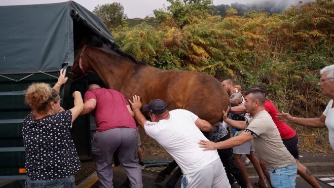 Las personas trasladan a sus animales tras la orden de desalojo / EFE - RAMÓN DE LA ROCHA