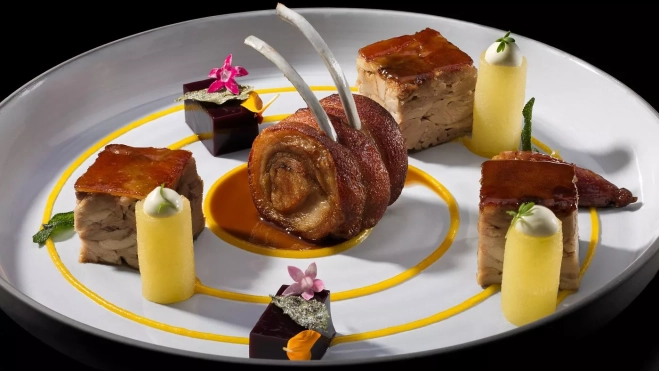 A continuación, algunas de las propuestas como entrante son, por ejemplo, el hinojo en risotto con carabinero, crudité y su jugo emulsionado o el calamar en texturas, crema untuosa de tocineta y crujiente de queso herreño son algunas de las propuestas. Seguidamente, entre los platos principales figuran creaciones como el cochinillo negro canario en dos texturas acompañado de membrillo de vino tinto especiado y manzanas rellenas de mousse de romero y cardamomo o el rodaballo salvaje, calabacín relleno de centello, zucchini acidulado y sabayón de azafrán.