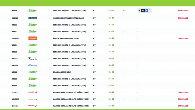 En el caso de los vuelos interinsulares, se mantiene la operatividad aunque con algunos retrasos. Los vuelos desde Tenerife Norte hacia La Palma contemplan demoras de aproximadamente una hora y media.