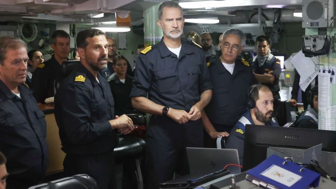 El rey Felipe VI ha presenciado este jueves en El Hierro un ejercicio de tiro realizado por la Armada con misiles y bombas contra el Martín Posadillo, en el que han participado el portaaeronaves Juan Carlos I, dos fragatas, aviones Harrier y helicópteros Seahawk. Dicho ejercicio se ha ejecutado concretamente en aguas al suroeste de la isla.
